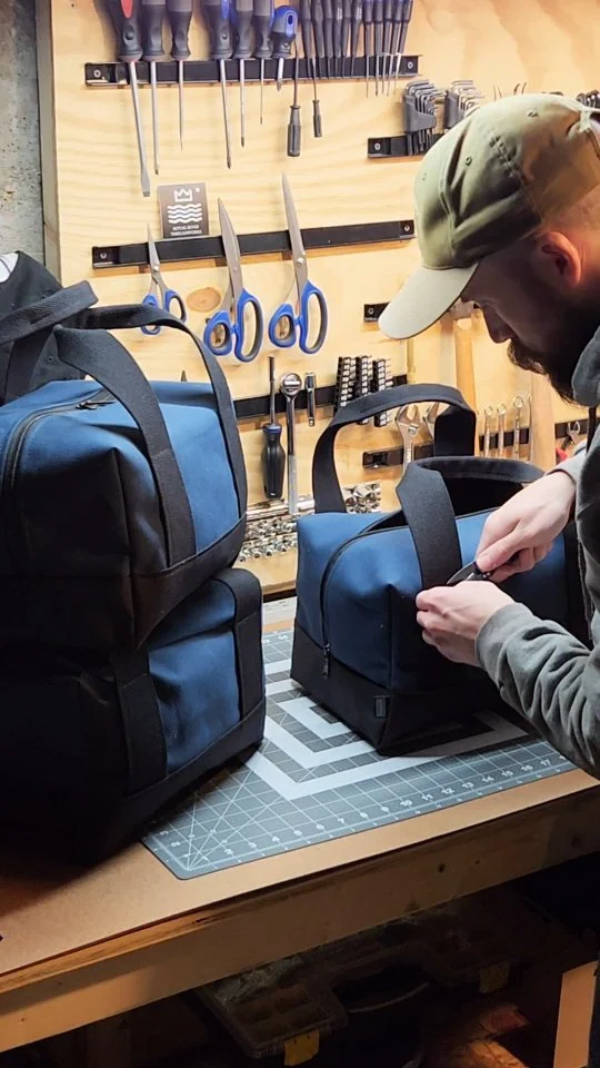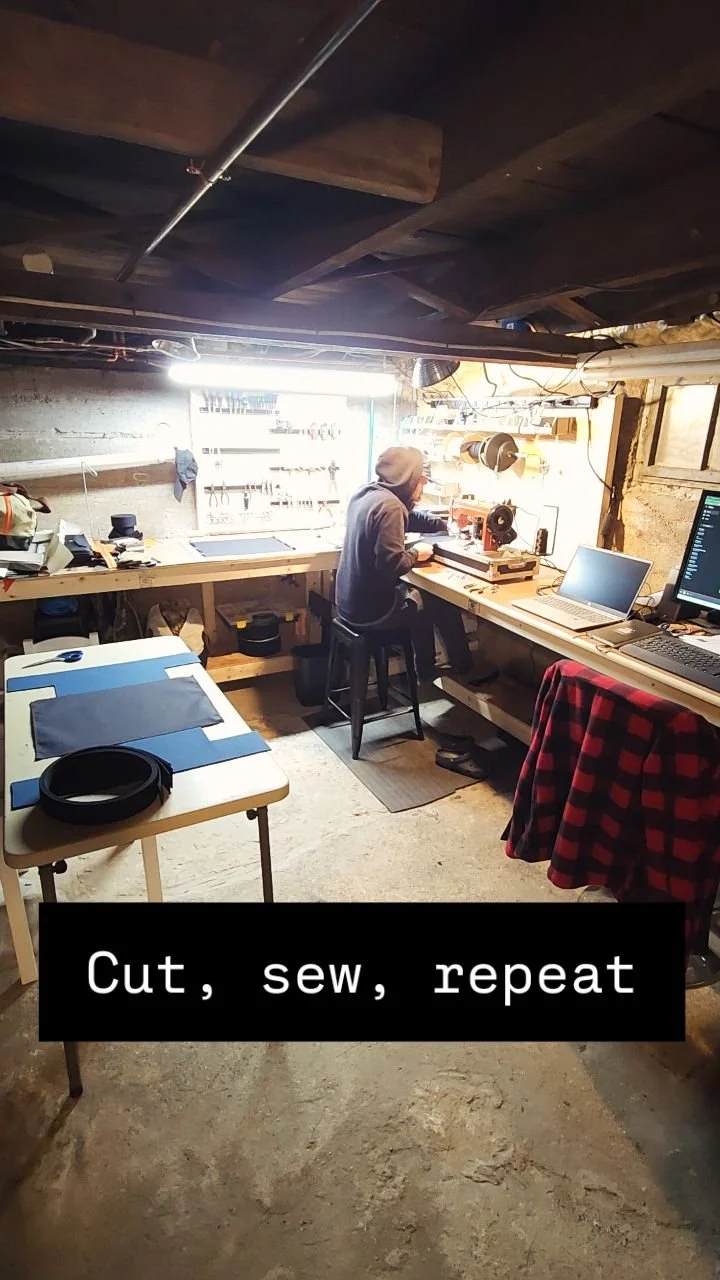Every piece comes from our southern Maine workshop. No assembly lines, no shortcuts. Just one maker, one machine, and careful attention to every stitch.